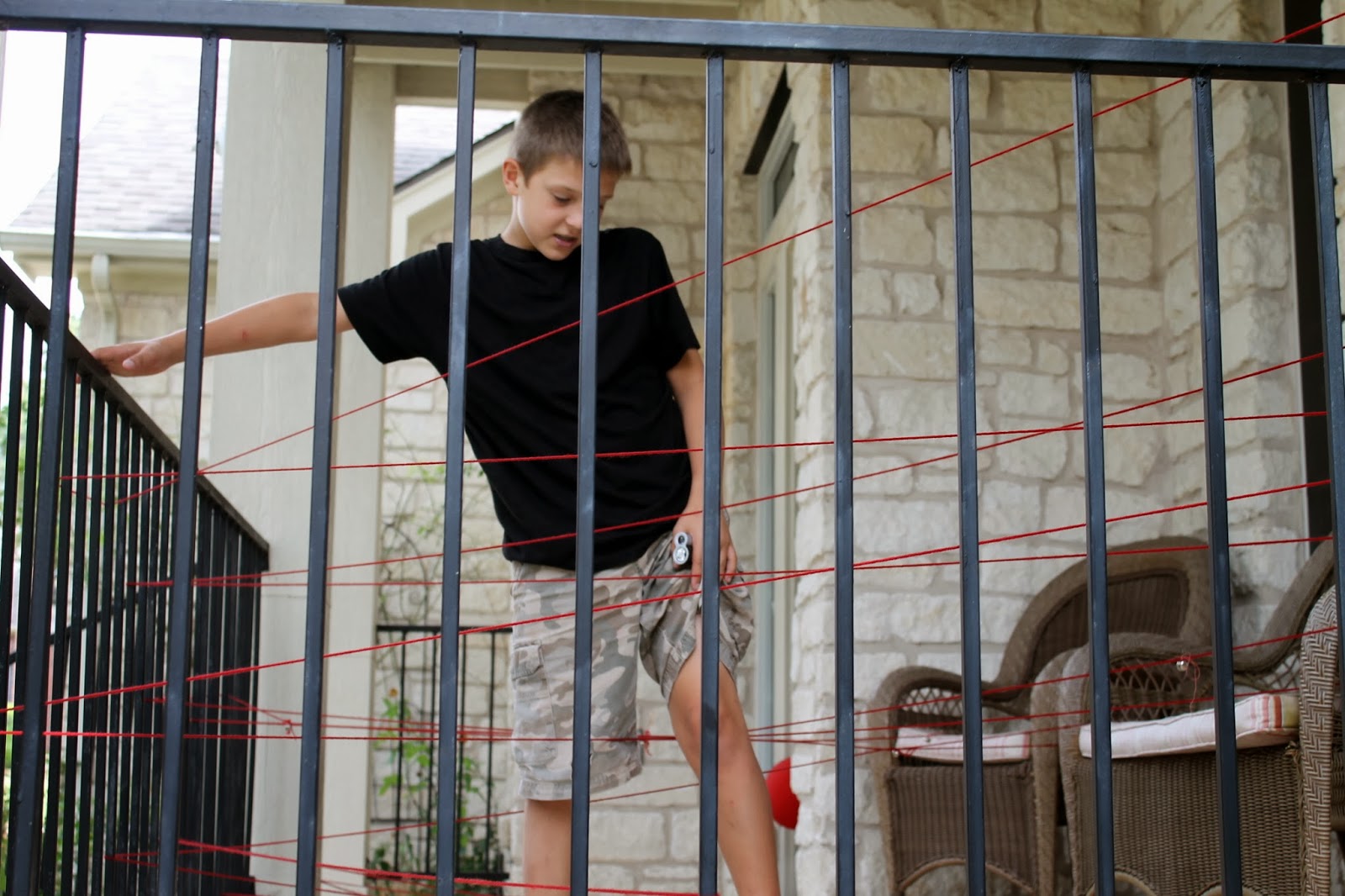 They had to cross the laser-beam covered porch without tripping or causing the bells to ring, so they could open the mysterious box at the end of it.